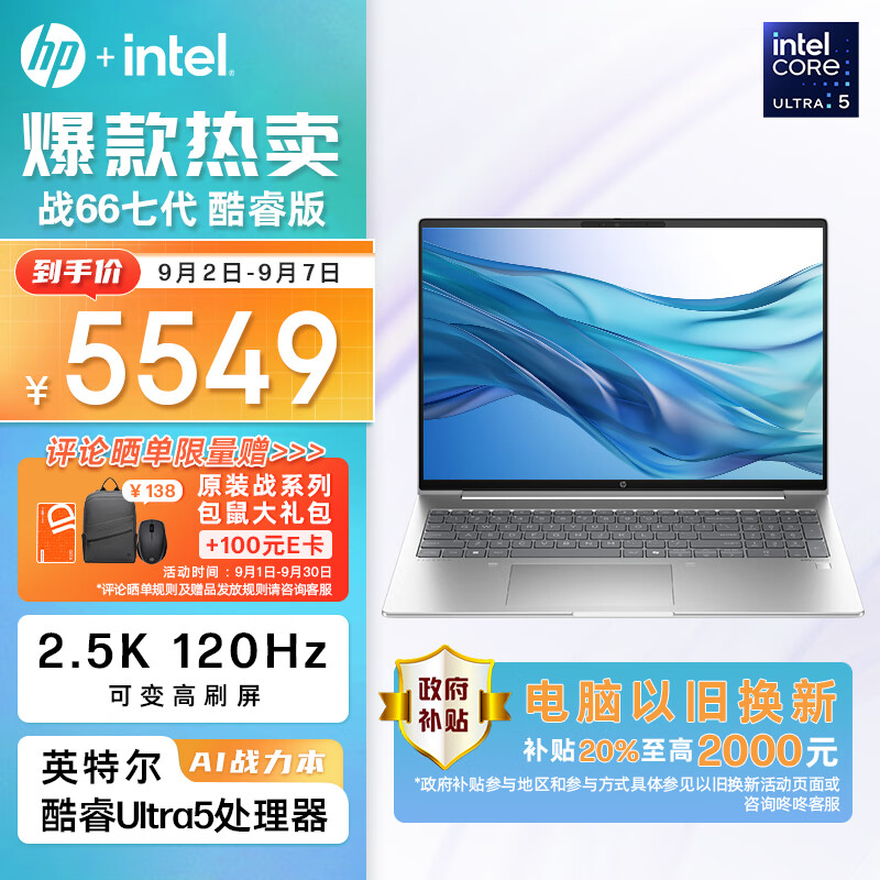 惠普(HP)战66 七代酷睿16英寸轻薄笔记本电脑(英特尔高性能Ultra5 32G 1T 2.5K高色域120Hz可变刷新 AI)价格:5299.00元!
