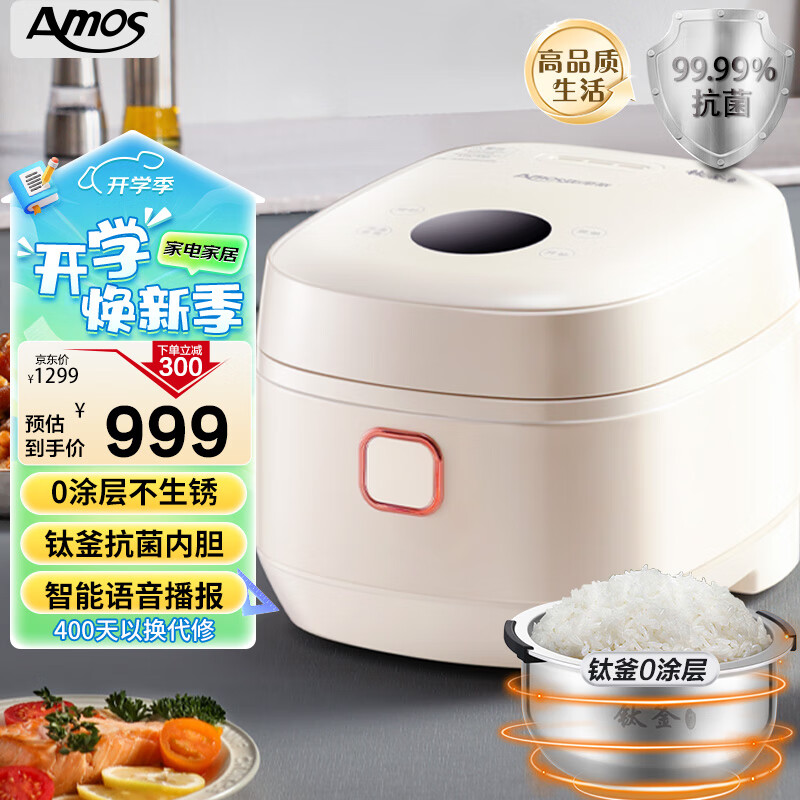 亚摩斯(Amos)钛釜0涂层电饭煲纯钛无涂层内胆3升多功能家用3-4人煮饭汤粥语音IH加热电饭锅AS-FB308T价格:1299.00元!
