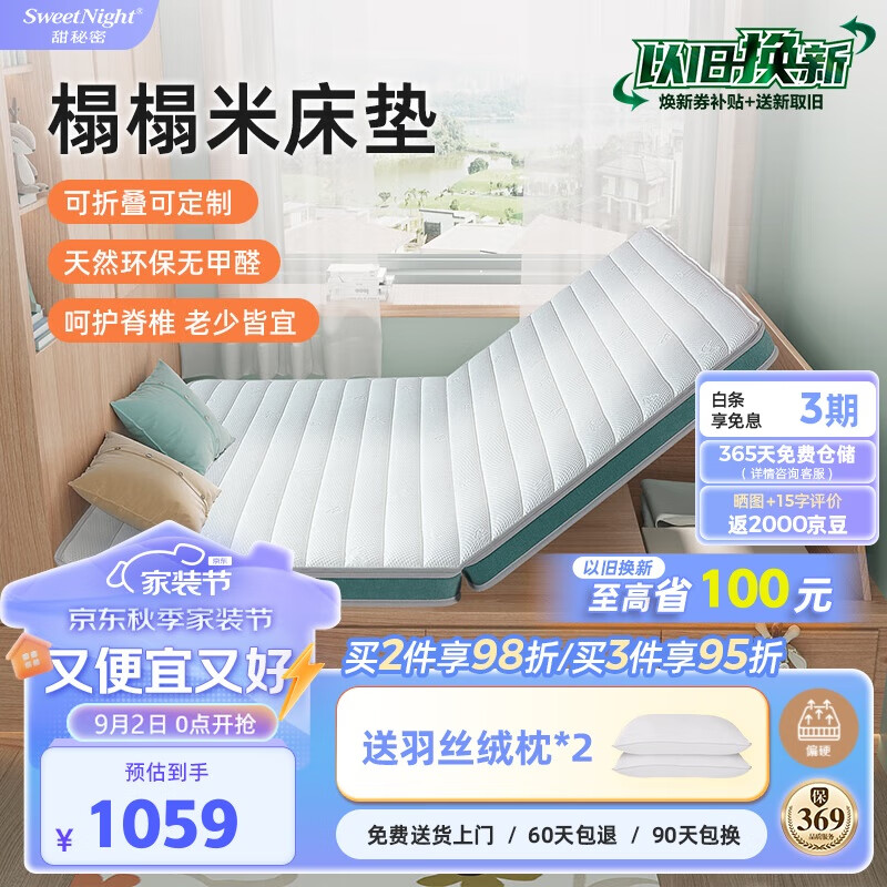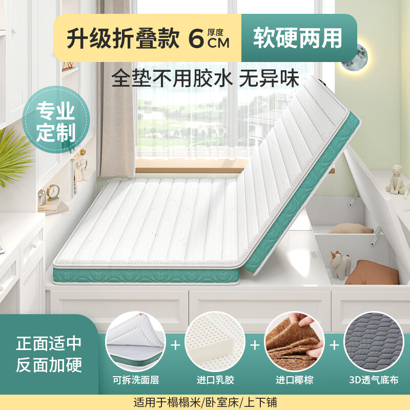 Sweetnight榻榻米床垫天然椰棕折叠6cm床垫子 可定制 甜秘密丹左B款1.5x2米价格:1059.00元!