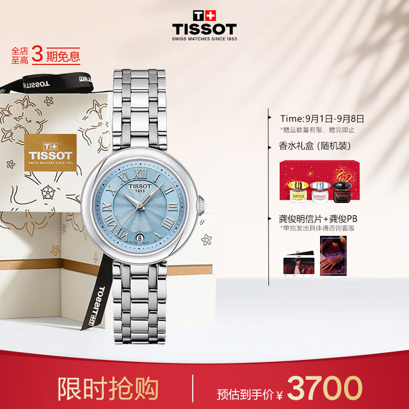 天梭(TISSOT)龚俊同款 小美人系列腕表 钢带石英女表 T126.010.11.133.00价格:3700.00元!