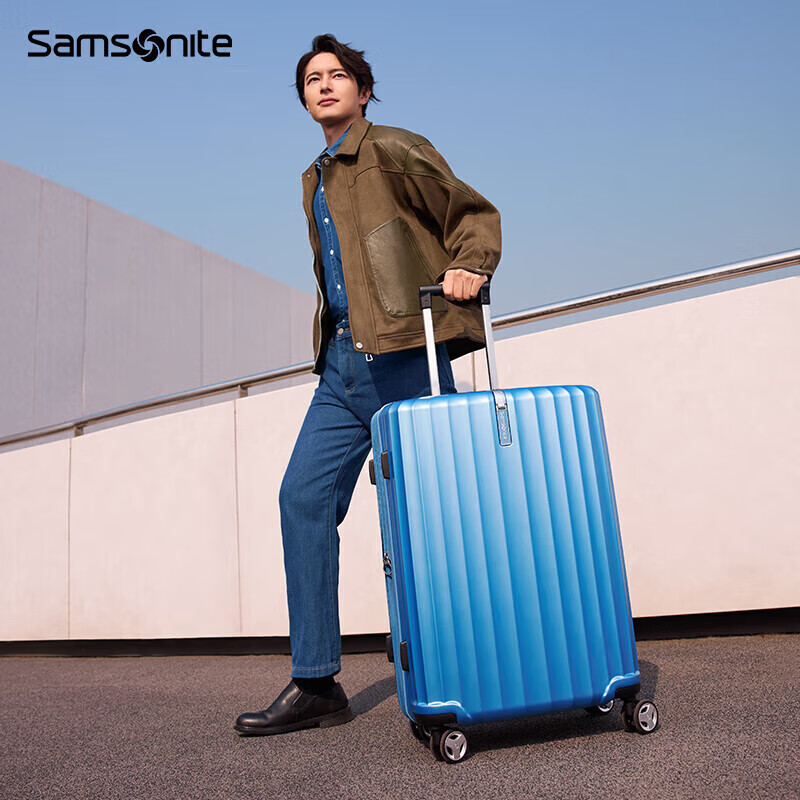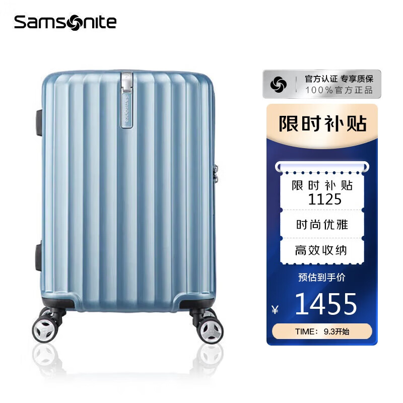 新秀丽(Samsonite)行李箱时尚竖条纹拉杆箱旅行箱浅蓝色20英寸登机箱GU9*11001价格:1655.00元!